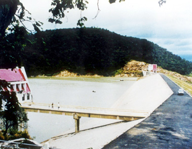 - Spillway: Reinforced concrete, 3 segment gates, BxH = 6x5, electrically operated, bucket type energy dissipator.