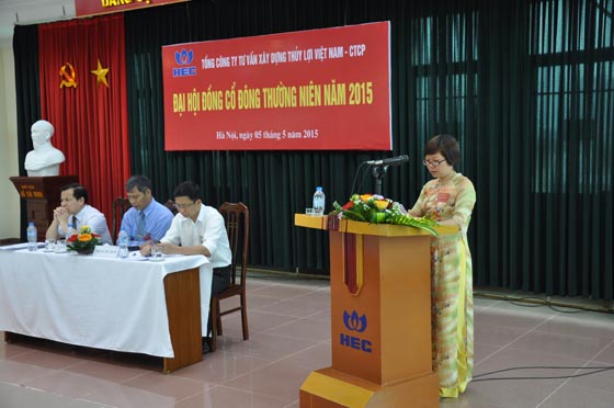 Ngày 05 tháng 05 năm 2015, tại trụ sở HEC số 2 ngõ 95 đường Chùa Bộc - quận Đống Đa - Thành phố Hà Nội, Tổng Công ty Tư vấn Xây dựng Thủy lợi Việt Nam – CTCP đã tổ chức thành công Đại hội đồng cổ đông thường niên năm 2015 và thông qua các nội dung chính sau đây:
