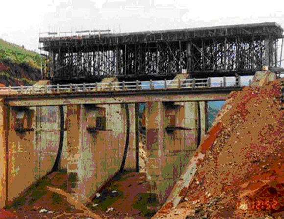 Cống lấy nước bờ nam dưới đập phụ kích thước lỗ cống thượng lưu bxh = 2x2,5 m, kích thước lỗ cống hạ lưu bxh=2,0x2,0m