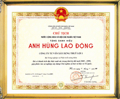 Với những thành tựu đã đạt được Tổng công ty Tư vấn Xây dựng Thuỷ lợi Việt Nam-CTCP vinh dự được đón nhận những phần thưởng cao quý của Chủ tịch nước Cộng hoà xã hội chủ nghĩa Việt Nam tặng thưởng: