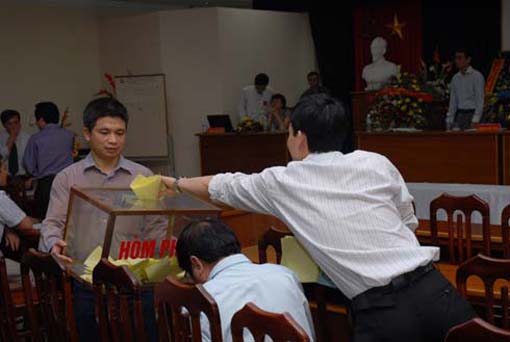 Ban kiểm phiếu kiểm tra các phiếu bầu