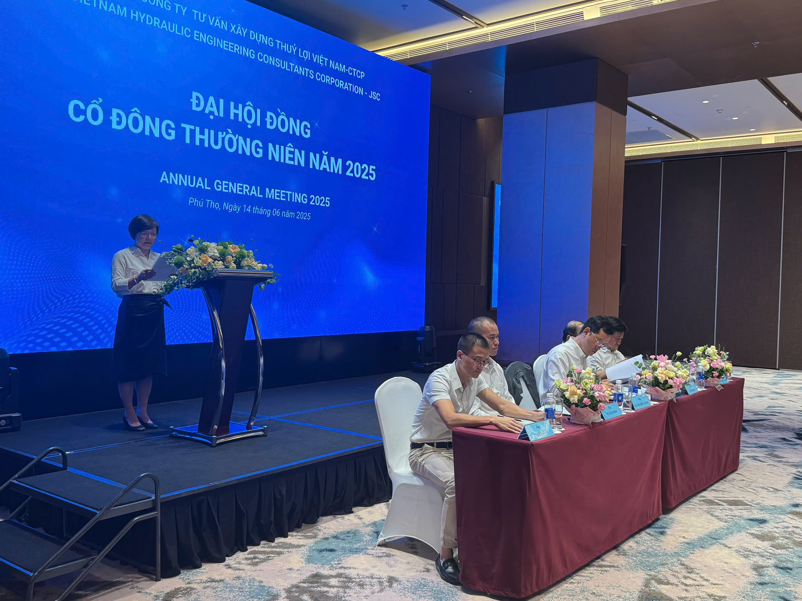 Chiều ngày 14/6/2025, Tổng công ty Tư vấn Xây dựng Thủy lợi Việt Nam - CTCP đã tổ chức thành công Đại Hội đồng cổ đông thường niên 2025 tạiHội trường Công ty cổ phần Khoáng nóng Thanh Thủy, Địa chỉ: Khu 2, xã Bảo Yên, huyện Thanh Thủy, tỉnh Phú Thọ.