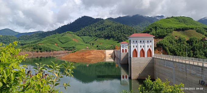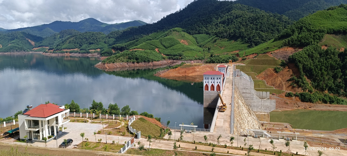 Toàn cảnh công trình đầu mối hồ chứa nước Đồng Mít. Ảnh: M.P.