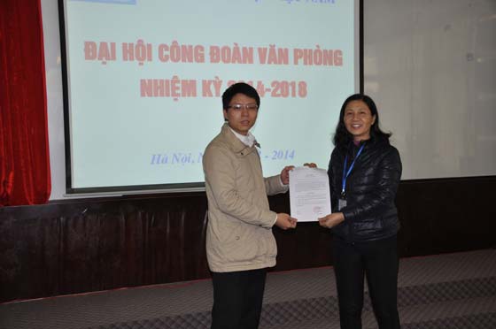 Trao Quyết định kết nạp đoàn viên công đoàn mới của Văn phòng