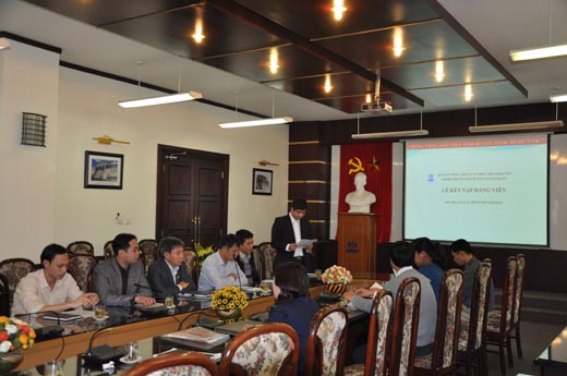 Đ/c Phạm Văn Chuẩn - Ủy viên BCH Đoàn Thanh niên Tổng Công ty đọc bản giới thiệu đoàn viên ưu tú Phạm Quang Huy vào Đảng