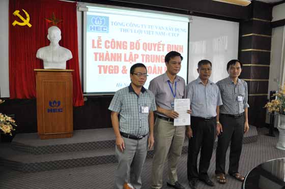 Sáng ngày 1/10/2014, tại phòng họp 210 trụ sở HEC đã tổ chức lễ công bố quyết định thành lập Trung tâm Tư vấn giám định và An toàn Đập Tại buổi lễ Ông Nguyễn Phong Thắng - Chánh Văn phòng Tổng công ty đã công bốQuyết định số 39/2014/QĐ-HĐQT ngày 16 tháng 9 năm 2014 về việc thành lập TTTVGĐ-TAĐ kể từ ngày 01/10/2014.