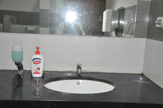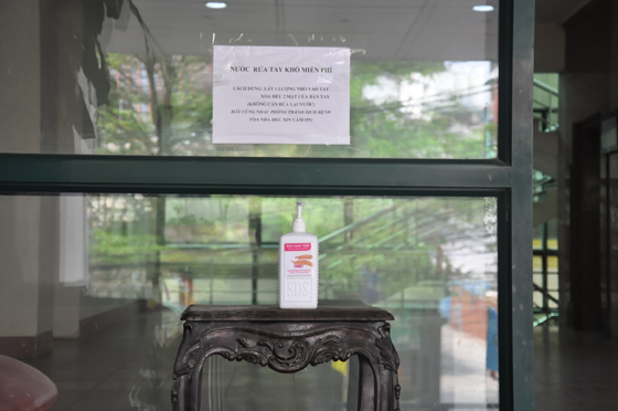 Việc trang bị nước rửa tay sát khuẩn ngay trước cửa ra vào tòa nhà HEC nhằm tăng cường ý thức phòng ngừa dịch bệnh cho người lao động trong tòa nhà.