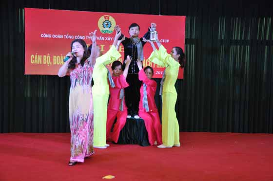 Phần thi sân khấu hóa có 8 đội thi đến từ công đoàn các đơn vị: HEC11, HEC12, HEC13, HEC14, ICC2, Trung tâm Cơ Điện, Trung tâm Thủy văn Mội trường và Khối quản lý của Tổng công ty tham gia.Tại Hội thi sân khấu hóa, mỗi đội thi trải qua 2 phần thi gồm: Phần thi Màn chào hỏi và phần thi trả lời câu hỏi trắc nghiệm. Phần thi màn chào hỏi các đội thi đã bình tĩnh, tự tin mang đến những phần thi đặc sắc, dàn dựng công phu, sôi động với những màn chào hỏi ấn tượng, sáng tạo thể hiện xuất sắc chức năng, nhiệm vụ của từng đơn vị và nhận được sự cổ vũ nhiệt tình của đông đảo khán giả. Bên cạnh đó, Hội thi đã làm nóng bầu không khí với 24 câu hỏi trắc nghiệm xoay quanh quá trình hình thành và phát triển của Công đoàn Việt Nam 85 năm qua.