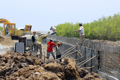 Xây dựng bờ kè chống sạt lở ven biển ở Kiên Giang. Ảnh: Công HânTNO