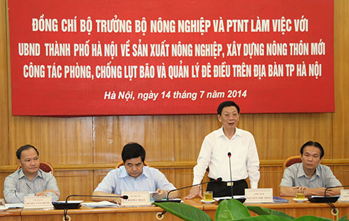 Ngày (14/7), Bộ trưởng Bộ Nông nghiệp và Phát triển nông thôn Cao Đức Phát làm việc với Ủy ban Nhân dân thành phố Hà Nội về sản xuất nông nghiệp, xây dựng nông thôn mới, công tác phòng chống lụt bão và quản lý đê điều trên địa bàn thành phố.