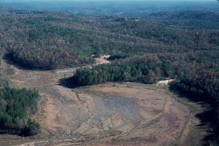 Khu vực thung lũng đập Kelly Barnes sau khi bị sự cố.
