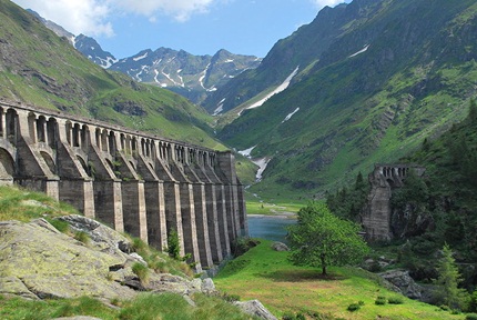 Đập Gleno với phần vỡ ở giữa vẫn còn đến ngày nay.
