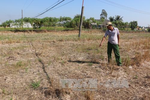 Tình hình xâm nhập mặn năm nay tại tỉnh Long An diễn ra rất nghiêm trọng, diễn biến sớm hơn và cường độ mạnh hơn mọi năm. Ảnh: Thanh Bình - TTXVN